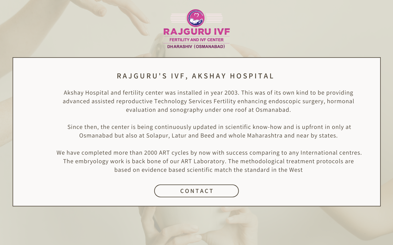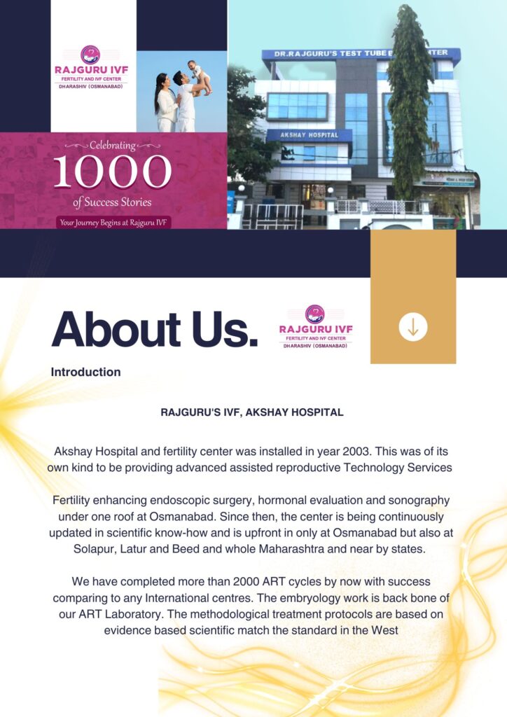 Address: Akshay Hospital & Rajguru Fertility Center Sanja Road , Dharashiv . ( Osmanabad )